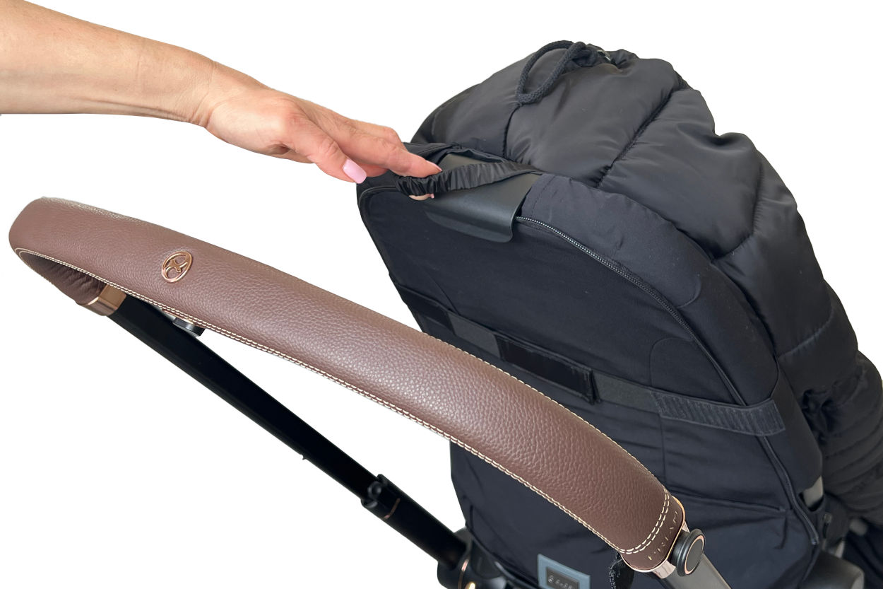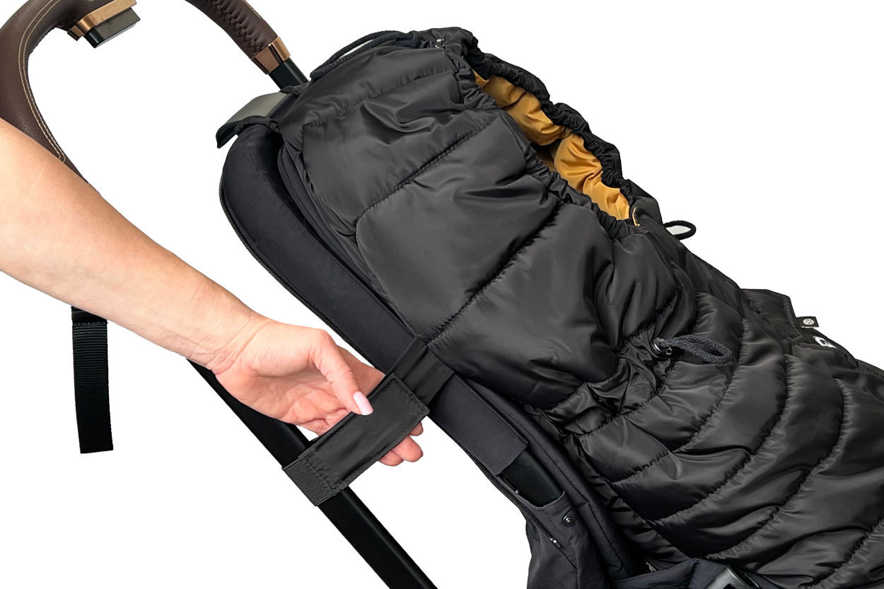 Śpiworek Thunder posiada wiele zabezpieczeń przed zsuwaniem się z siedziska, między innymi profilowanie tyłu. To dzięki temu śpiworek lepiej dopasowuje się do pozycji siedziska i oparcia wózka a dodatkowa przestrzeń profilowania powoduje, że śpiworek nie skraca się w pozycji siedzącej dziecka zapewniając mu komfort i wygodę.